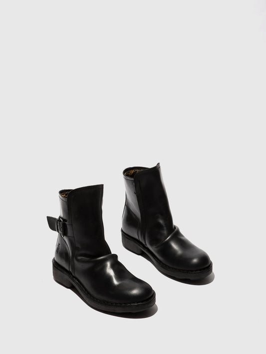 Fly London Women's MAZZ127FLY Leather Buckle Boots Black