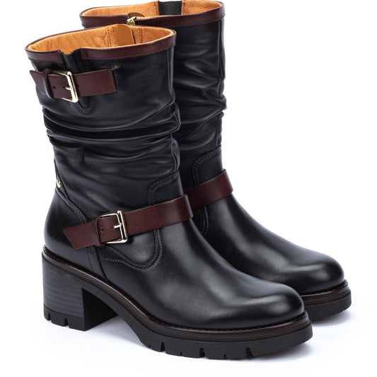 Pikolinos Women's Soria WOB-8534C1 Leather Biker Boots Black