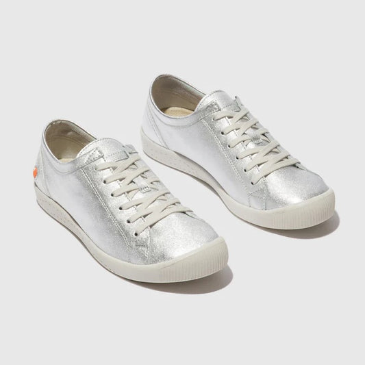 Softinos Women's ISLA154SOF Laminato Leather Lace-up Trainers Silver