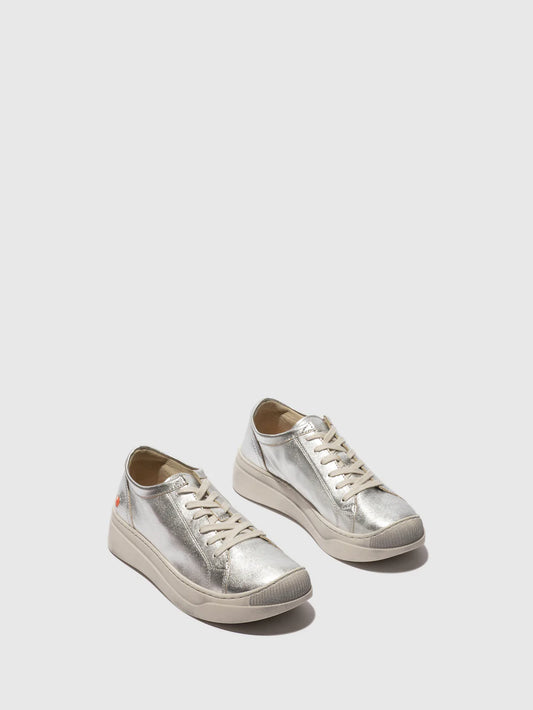 Softinos Women's APOR794SOF Laminato Leather Lace-up Trainers Silver