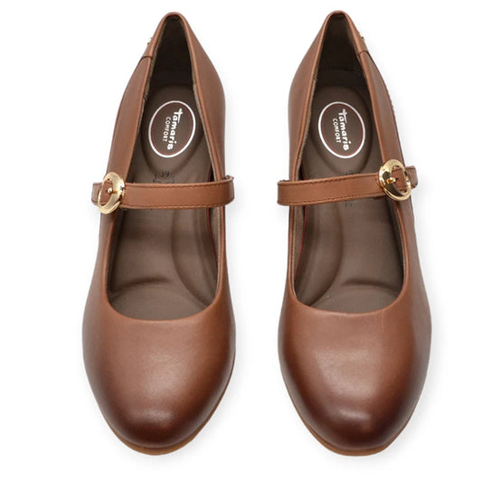 Jana Women's 8-84402-41 Comfort Heel Pumps Shoes Cognac Brown