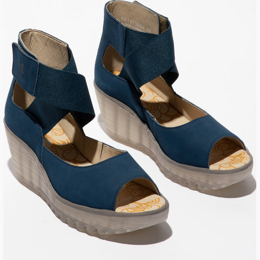 Fly London Women's YEFI473FLY Leather Strap Sandals Blue