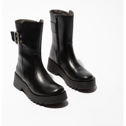 Fly London Women's MAZZ127FLY Leather Buckle Boots Black