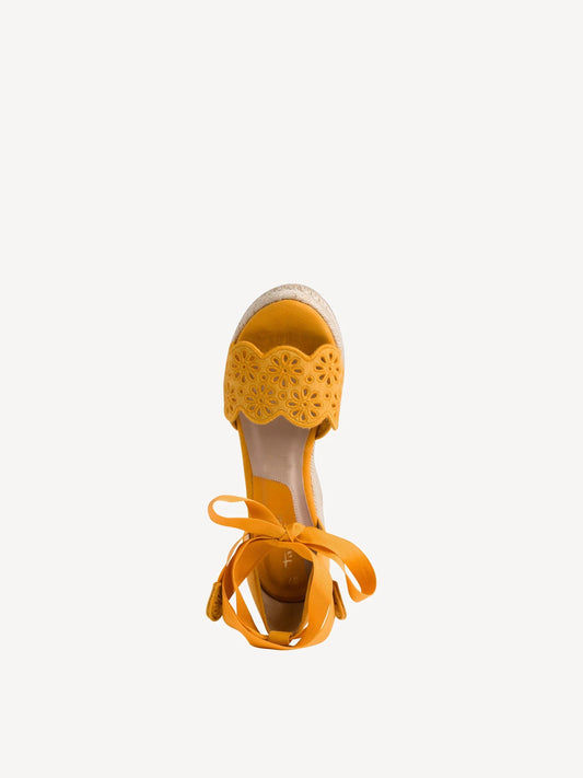 Tamaris Women's 1-28393-26 Leather Wedge Heel Sandals Mango Yellow