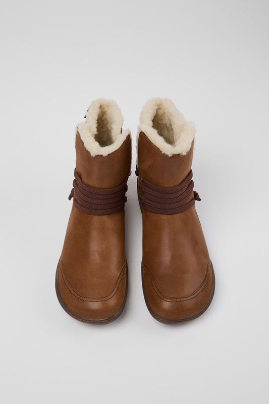 Camper Women's K400505 Peu Leather Ankle Boots Cola Brown