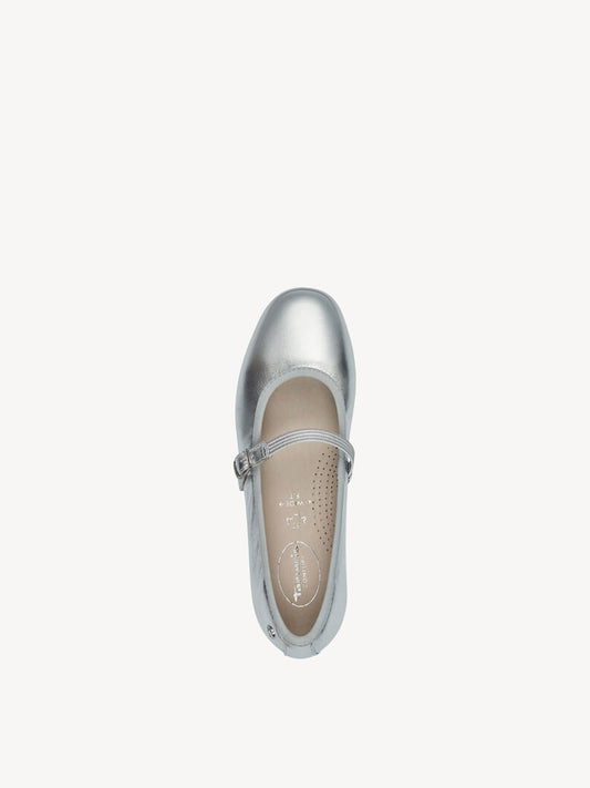 Tamaris Women's 8-82107-44 Leather Ballerina Shoes Silver