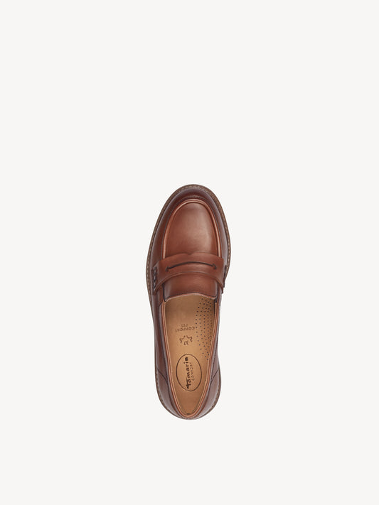 Tamaris Women's 8-84312-43 Leather Slipper Loafer Shoes Cognac Brown