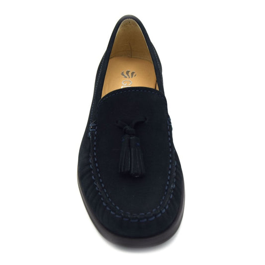 Globo Women's Darley Leather Tassel Slip-On Moccasin Shoes Blue Nubuck