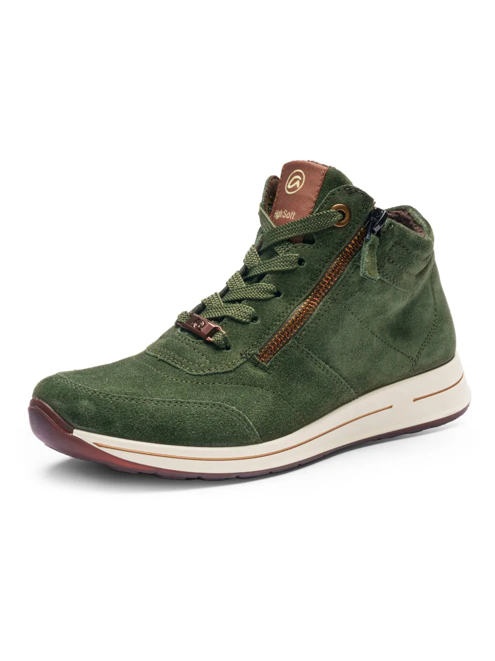 The high-top sneaker positively affects your wellbeing! Soft leather creates a wonderful look that convinces right away. The shoe is particularly comfortable thanks to the soft all-round padding on the shaft which prevents the development of unpleasant pressure points. In addition to the lacing, the two zip closures on the side simplify putting the shoes on and taking them off. The soft bamboo-based terry cloth lining ensures true moments of wellbeing. This material is very comfortable to wear and ensures an excellent foot climate as it absorbs moisture wonderfully and dries quickly. The changeable footbed is not only softly padded but also covered with terry cloth. Tired feet are a thing of the past as the sneaker is particularly comfortable thanks to the innovative HighSoft technology. With these ankle boots with wedge sole fashion-conscious women are well equipped.