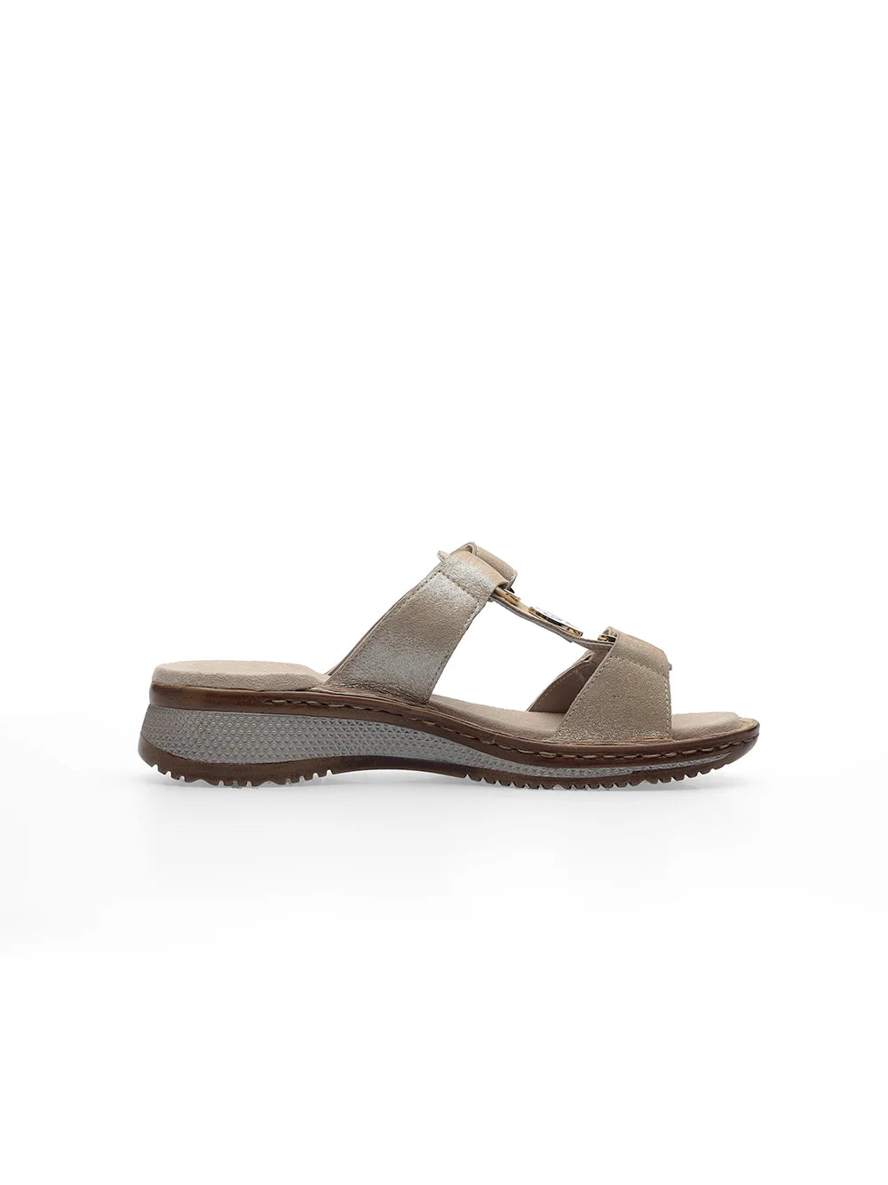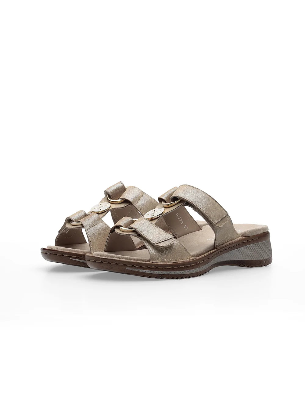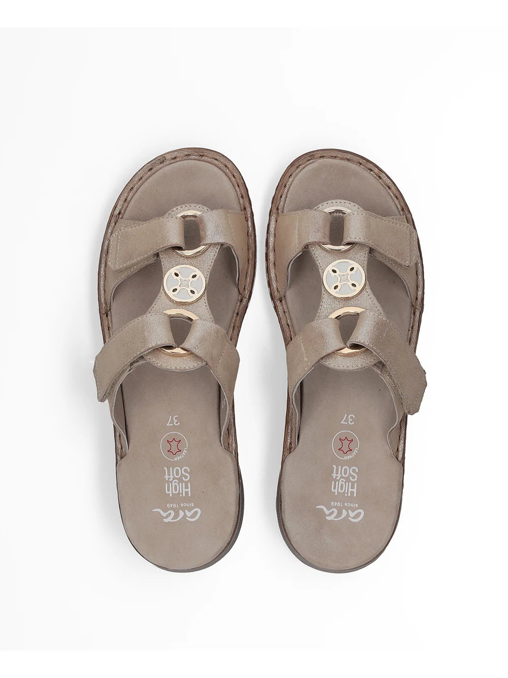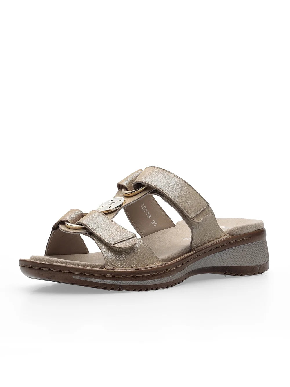 Ara Women's Hawaii 12-29003 Leather Wedge Heel Mule Sandals Metallic Sand