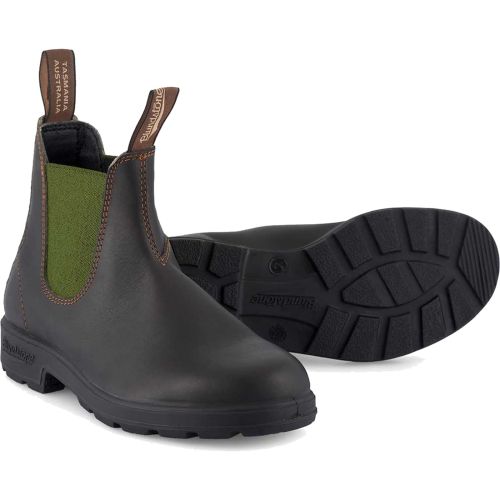 The #519 distinctive olive green elastic side panels are set against dark brown leather uppers. The anatomically shaped PU midsole is designed for comfort, while the TPU outsoles are hard-wearing and provide stability. The removable and replaceable EVA footbeds add extra comfort. The #519 combines Blundstone practicality with contemporary looks.