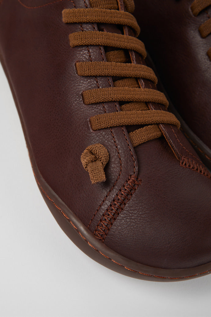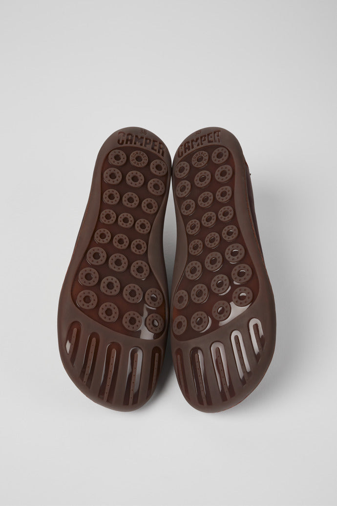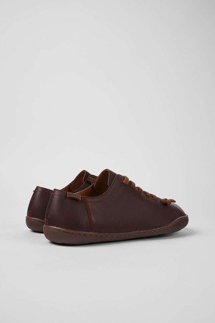 Brown leather women's shoes with removable PU footbeds and TPU outsoles (20% recycled). A Camper Icon that evolves with every season. Peu is functional simplicity inspired by walking barefoot. It is 360-degree stitched and built with a Strobel construction technique, guaranteeing unmatched flex and durability under any conditions.