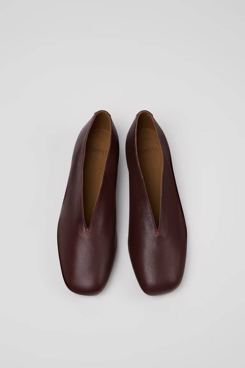 Burgundy calfskin leather shoes for women with OrthoLite® Recycled™ footbeds and TPU outsoles (20% recycled).