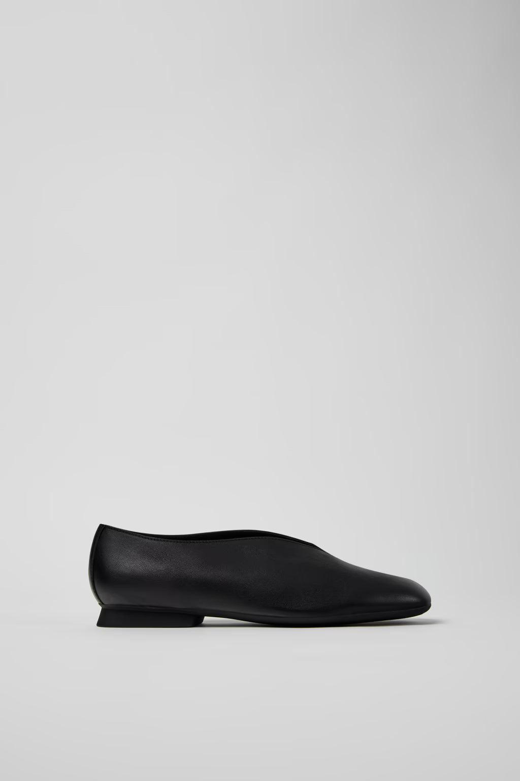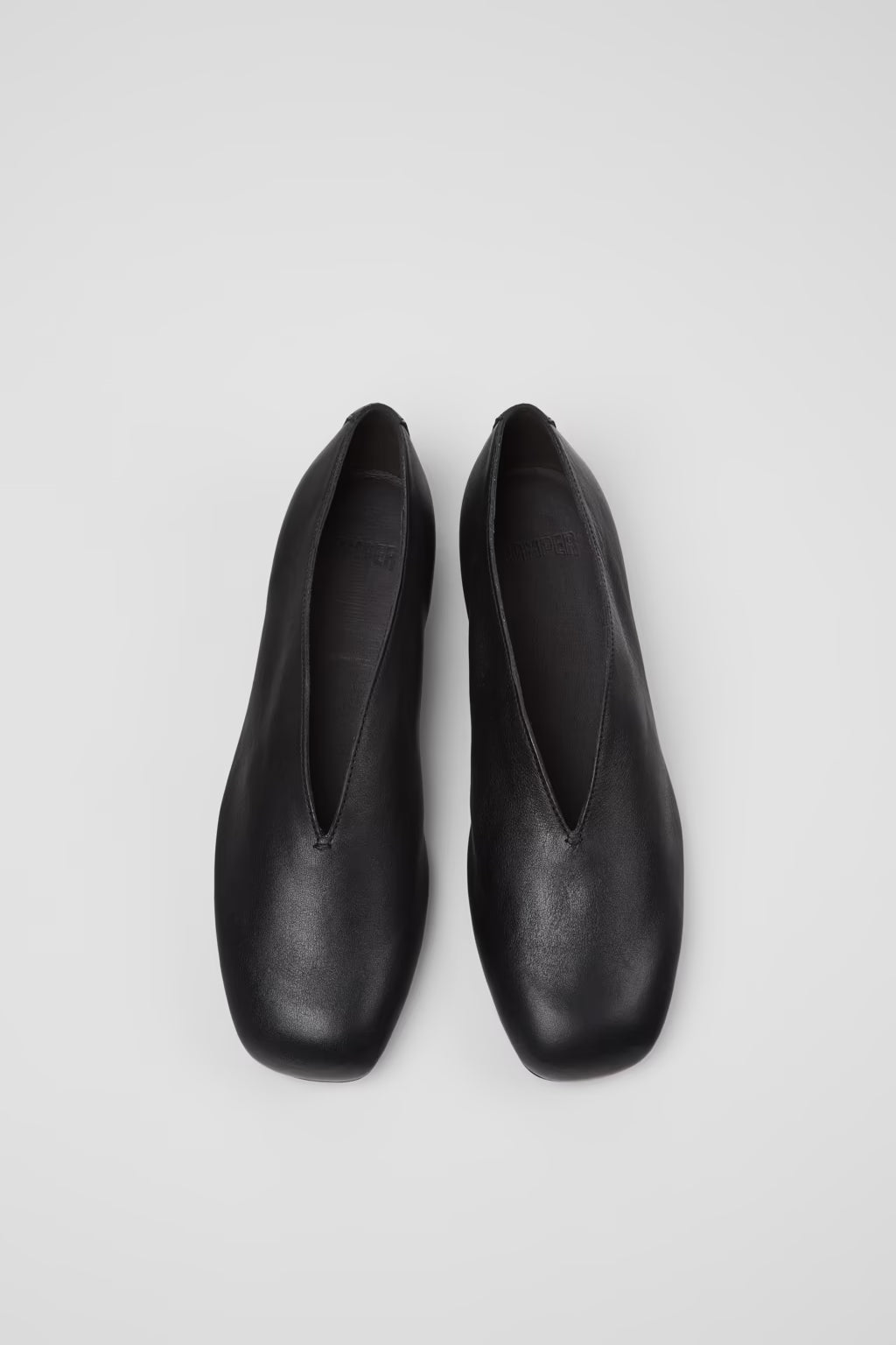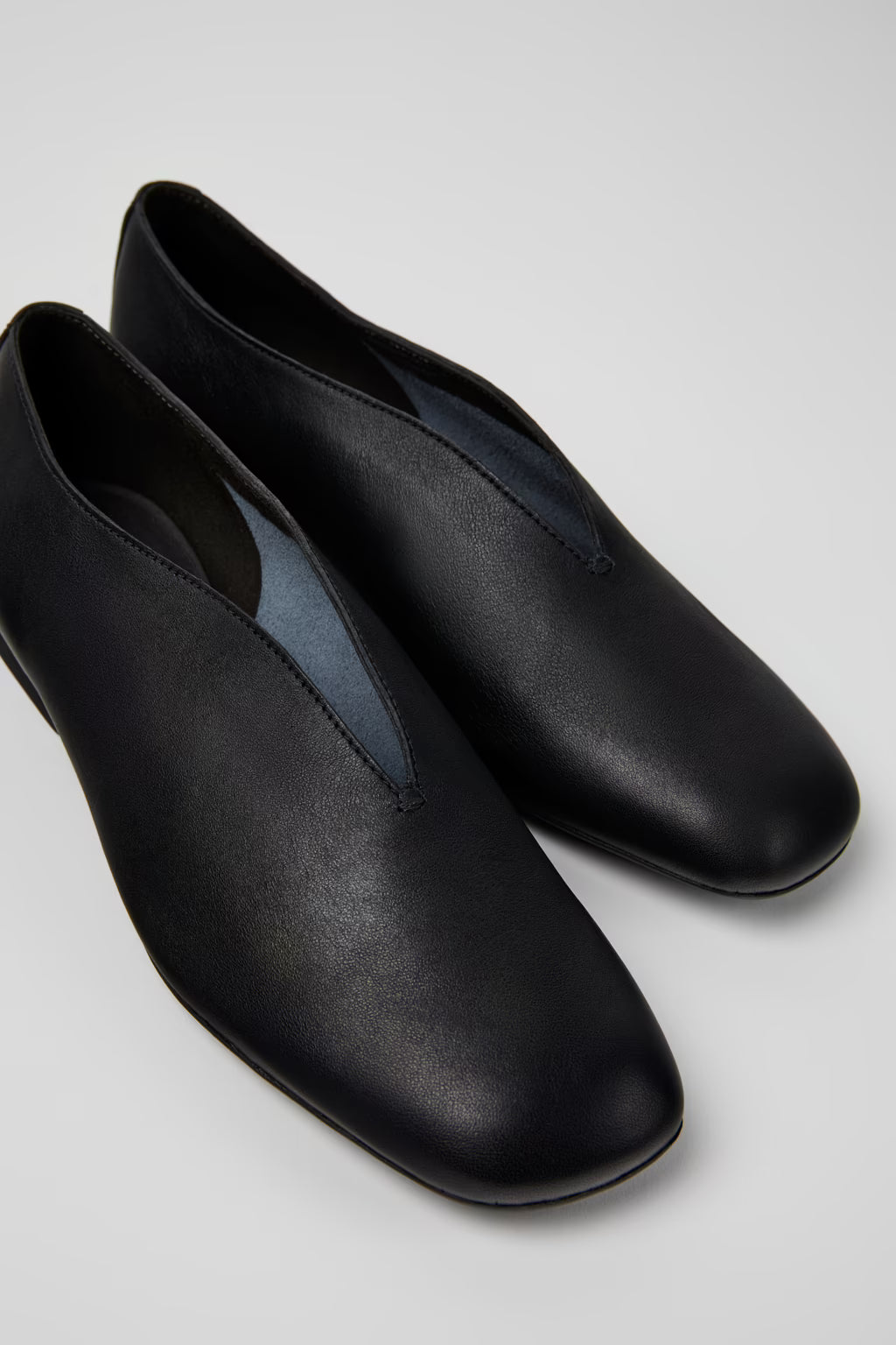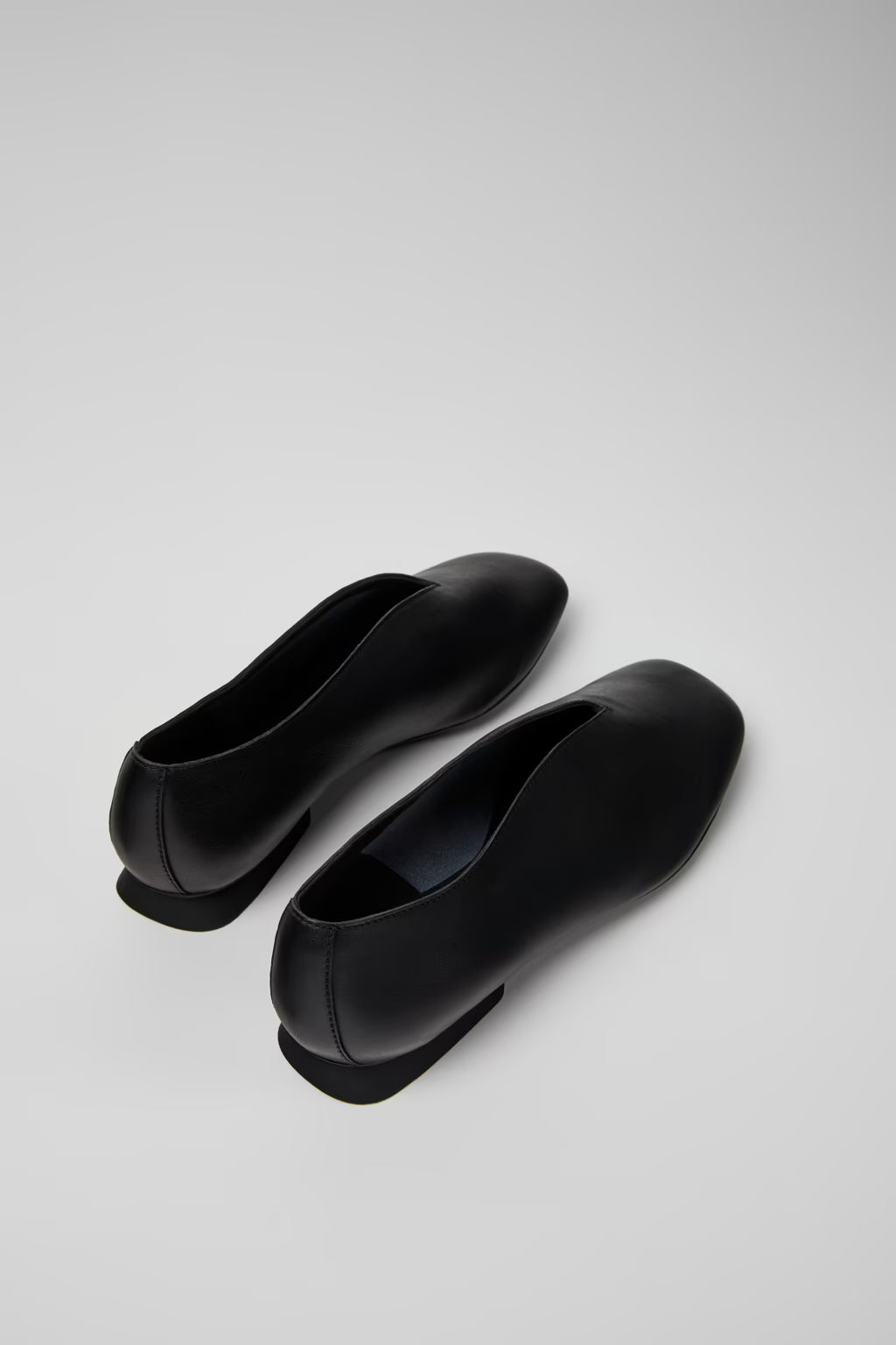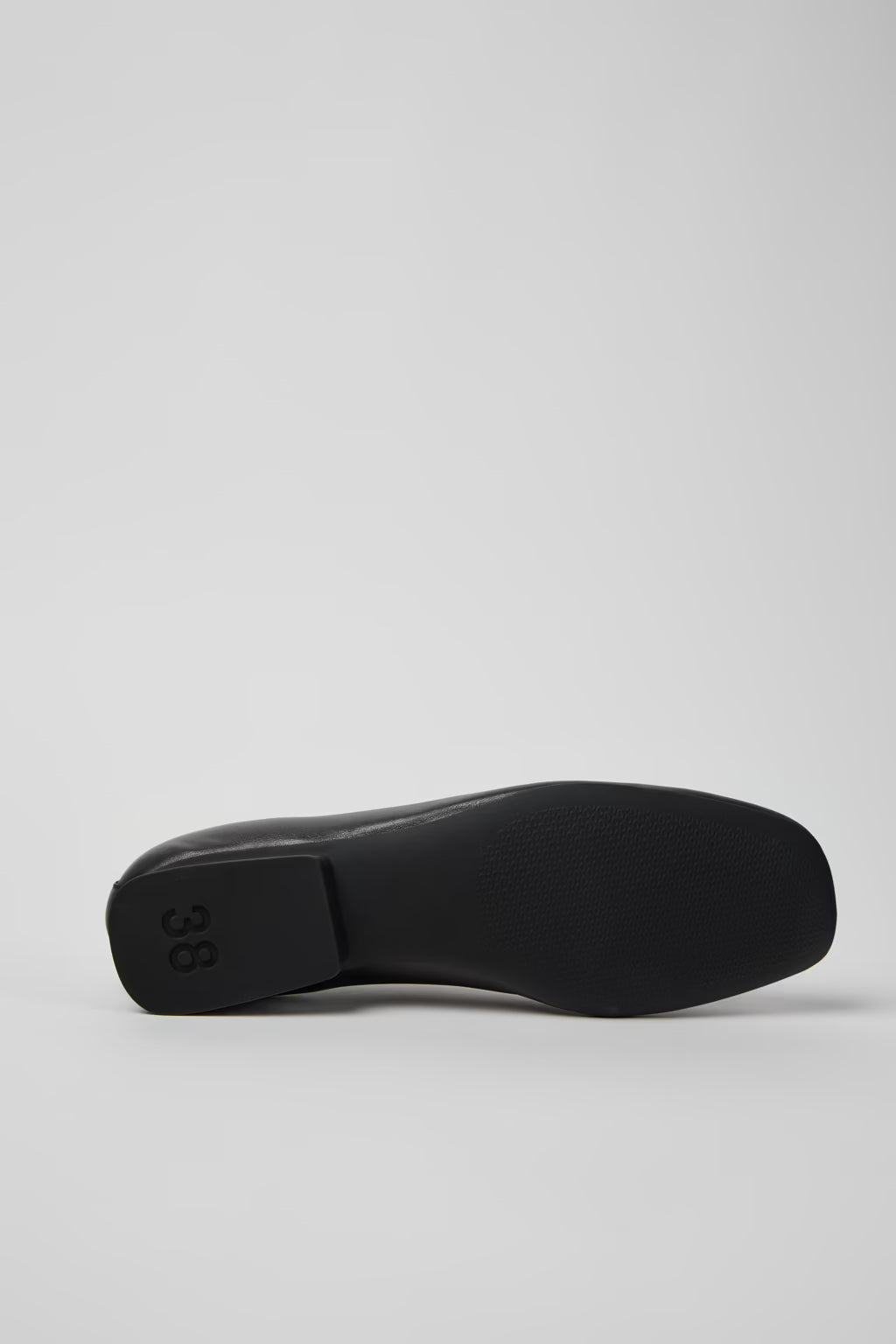 Black calfskin leather shoes for women with OrthoLite® Recycled™ footbeds and TPU outsoles (20% recycled).