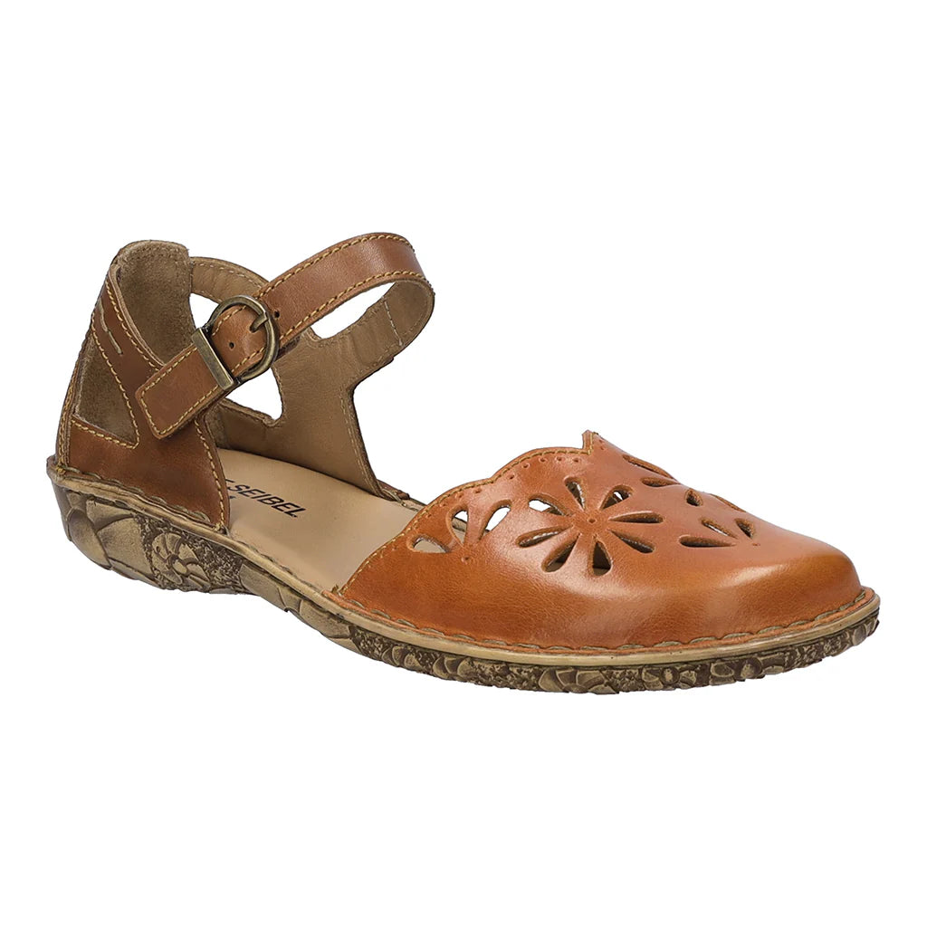 JOSEF SEIBEL Rosalie 04, a leather round-toe sandal with hand-stitched details and a delicate laser-cut pattern. Made from soft leather, it features a lightweight, flexible sole for all-day comfort and natural movement.