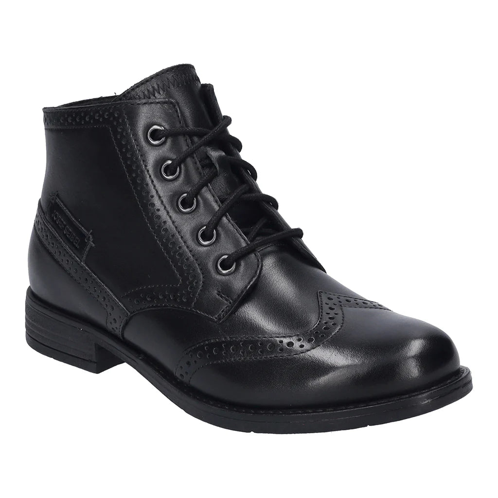 JOSEF SEIBEL Simona 08 ankle boot. Inspired by classic brogue design, these leather boots are the perfect blend of sophistication and charm. The lace-up fastening adds a touch of elegance, while the practical low-height block heel provides all-day comfort. Whether you're heading to the office or out for a night on the town, these boots will quickly become your go-to choice for any occasion.