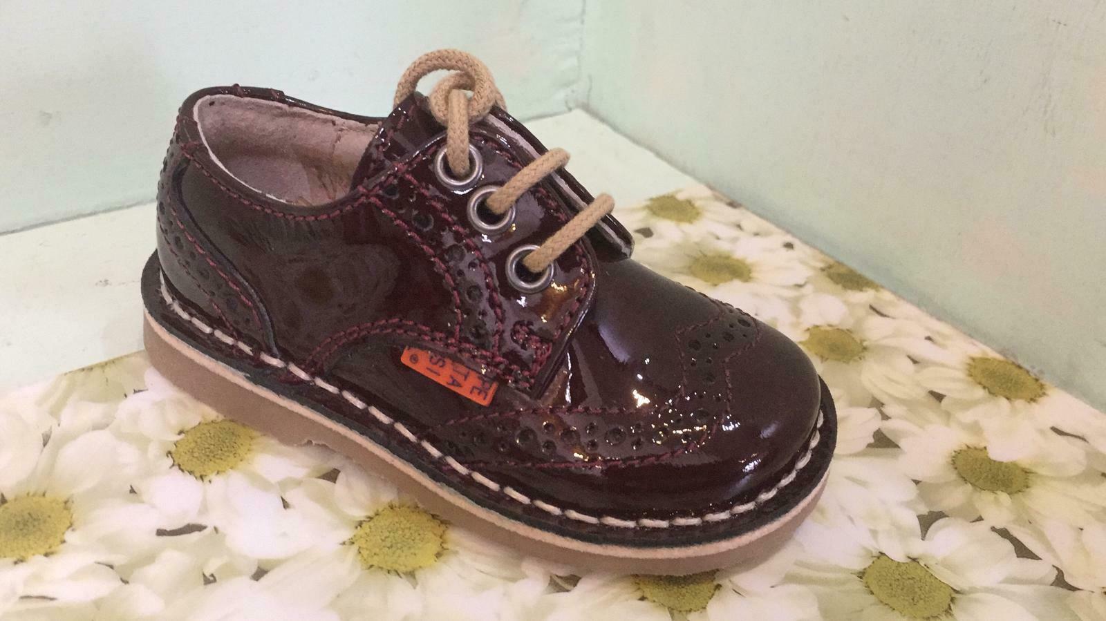Petasil Childrens Boys Charlie Leather Brogue Shoes Bordeaux Patent