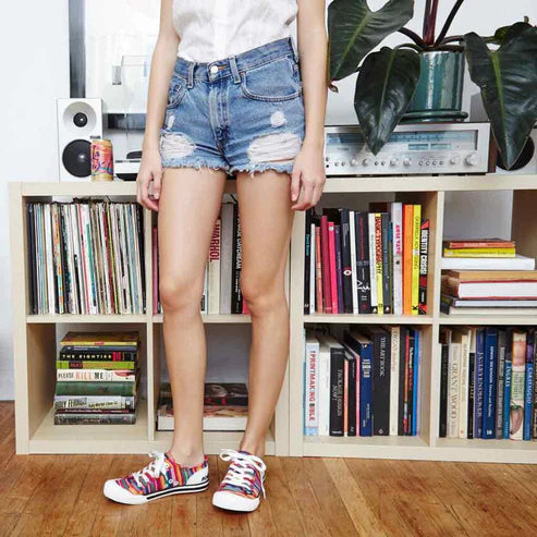 Eyes down here, please! This Colourful striped trainer will steal the show and is a sure way to brighten your day and wardrobe! The classic trainer style of a white rubber toe cap has been kicked up one giant notch with a rainbow striped cotton upper.