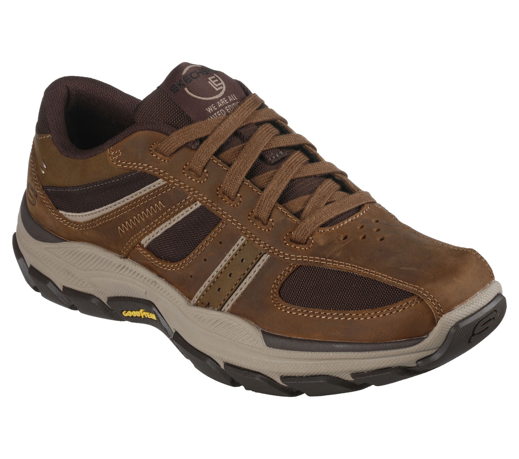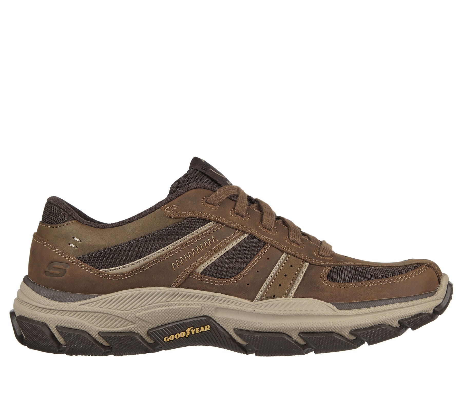 Classic style gets an update in modern comfort with Skechers Relaxed Fit®: Respected - Edgemere. This lace-up features a leather upper with a bicycle toe, cushioned Skechers Air-Cooled Memory Foam® insole, Skechers Goga Mat Arch™ cushioning for added support, and a durable Goodyear® Performance Outsole with a Steady Grip.