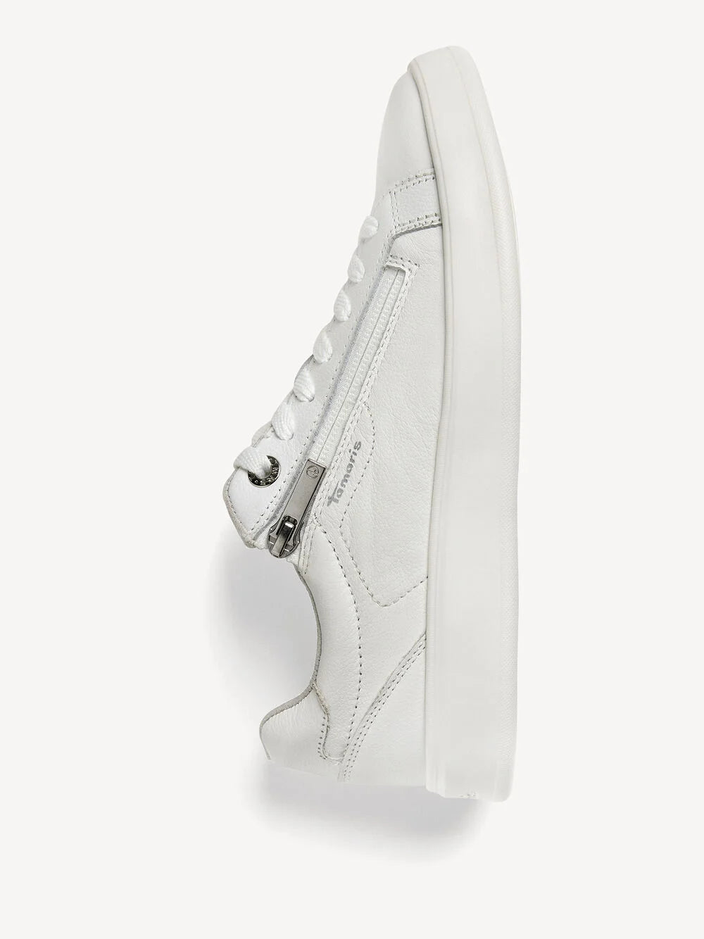Tamaris Women's 1-23709-44 Leather Lace-Up Sneakers White