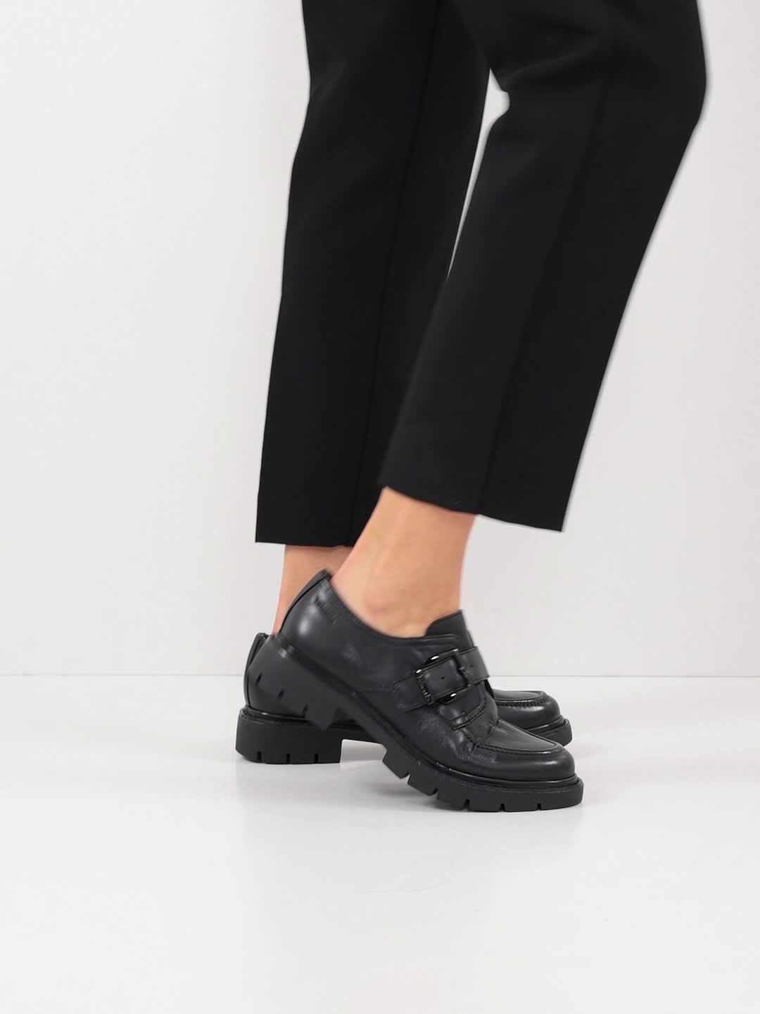 Tamaris Women's 8-84316-45 Leather Buckle Slipper Loafer Shoes Black